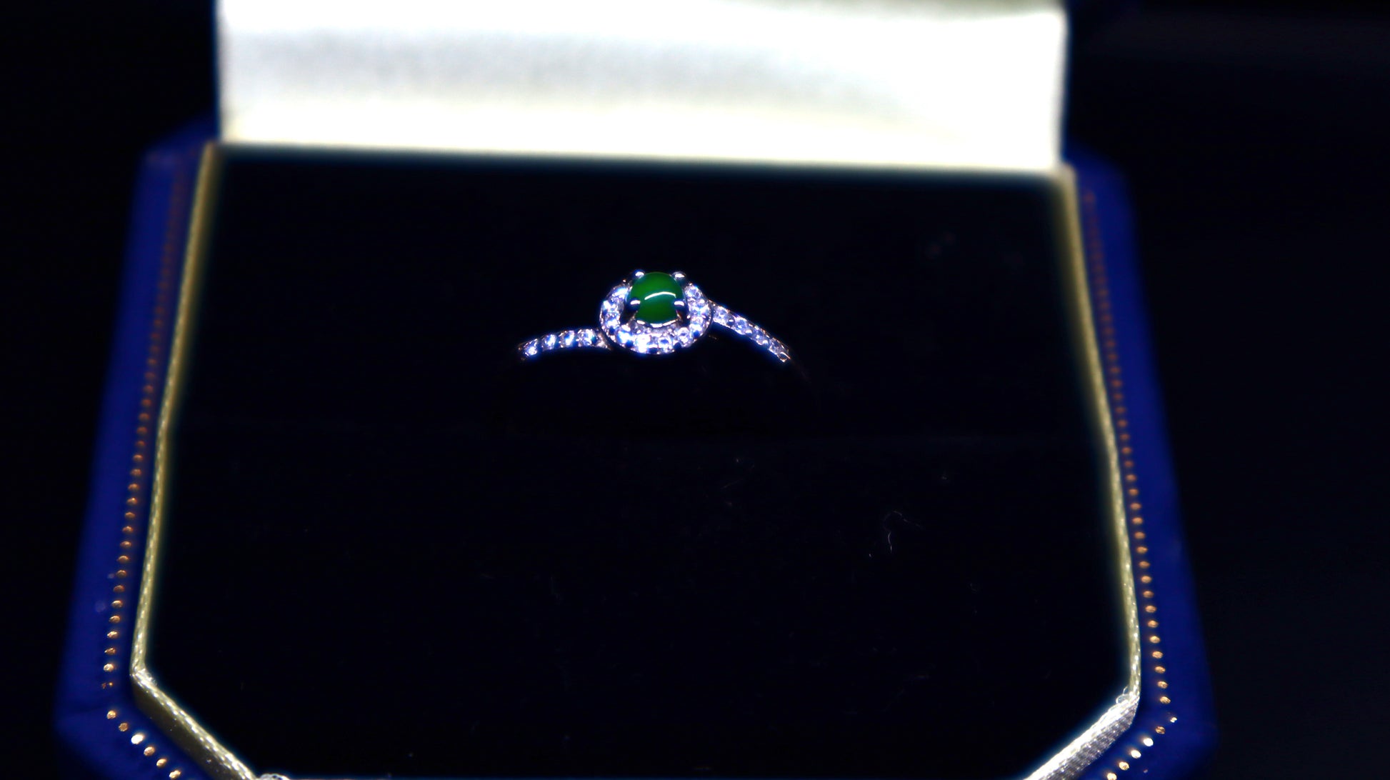 Split Band Jadeite Green Jade Ring with Halo Zirconia