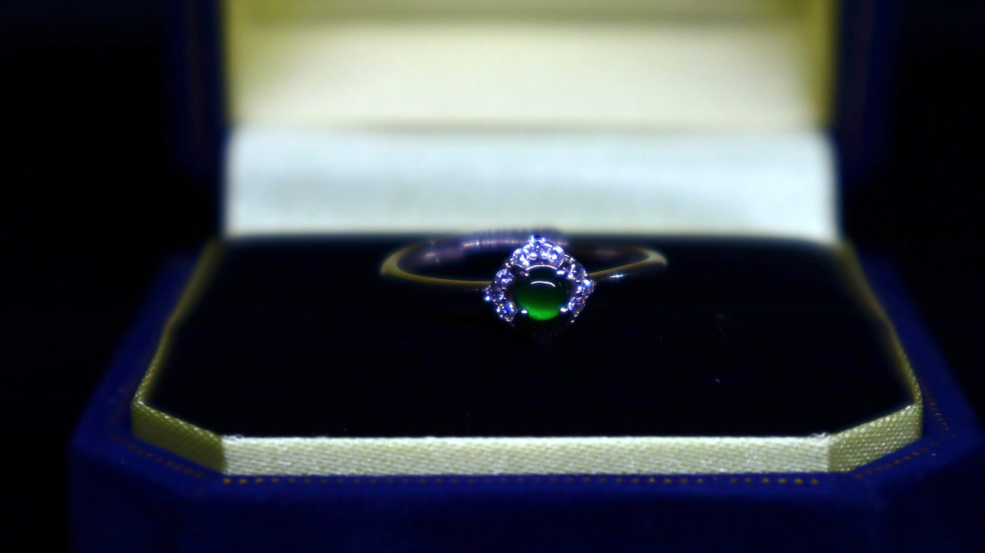 Vintage-Inspired Jadeite Green Jade Ring with Diamond-Shaped Zirconia Halo